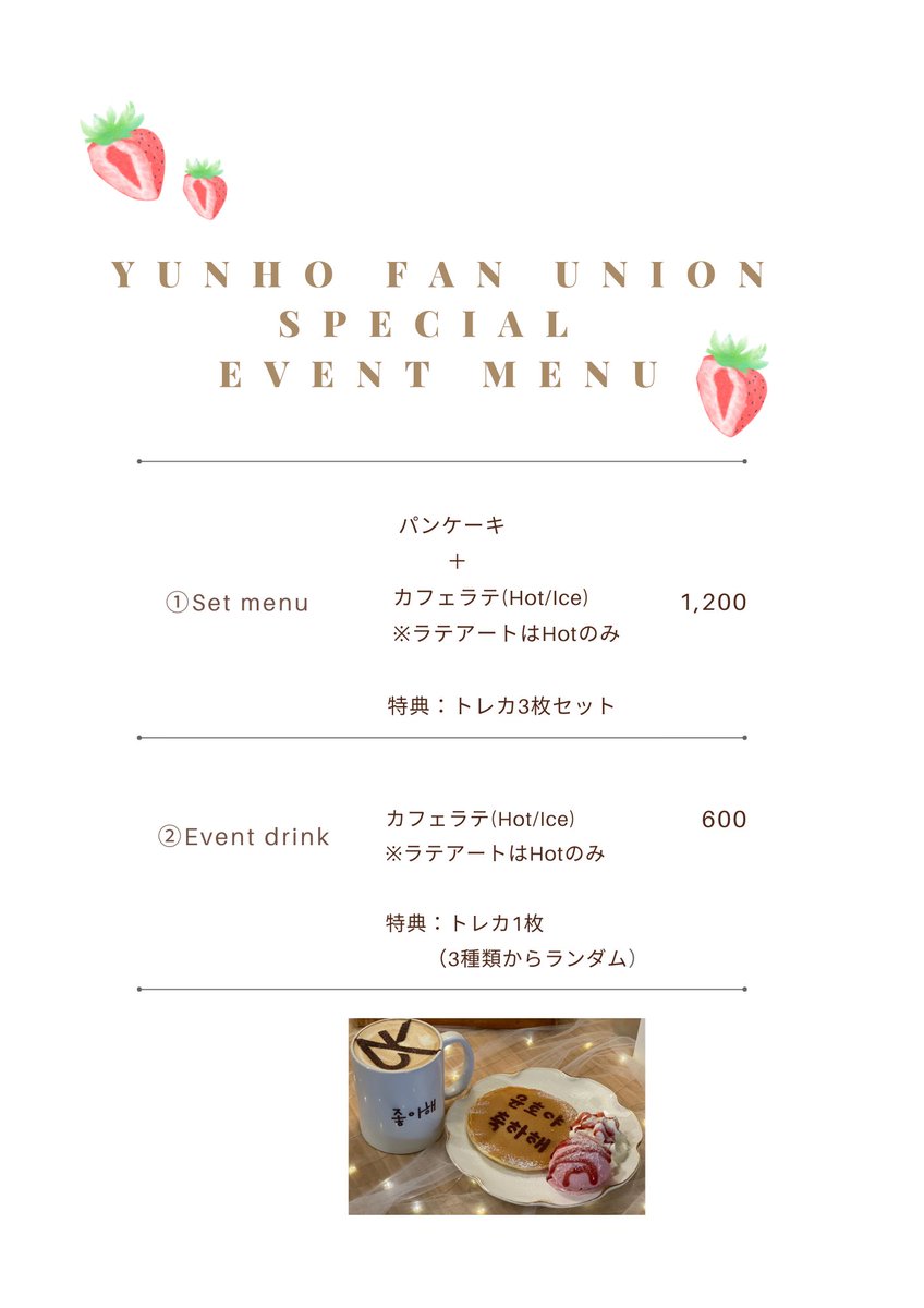 特別メニューをご用意しました🍓ので、特典をご希望の方は必ずお写真のメニューをご注文ください🙇♂️🤍