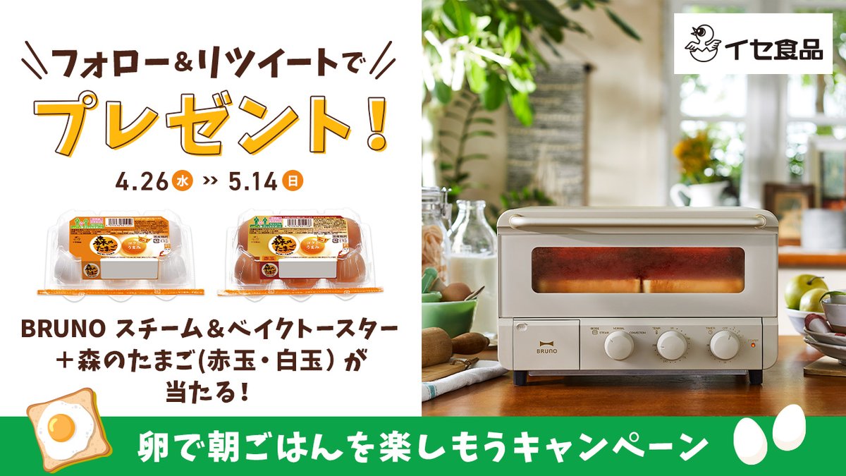 『BRUNO スチーム&ベイクトースター』+『森のたまご』が当たる!🥚