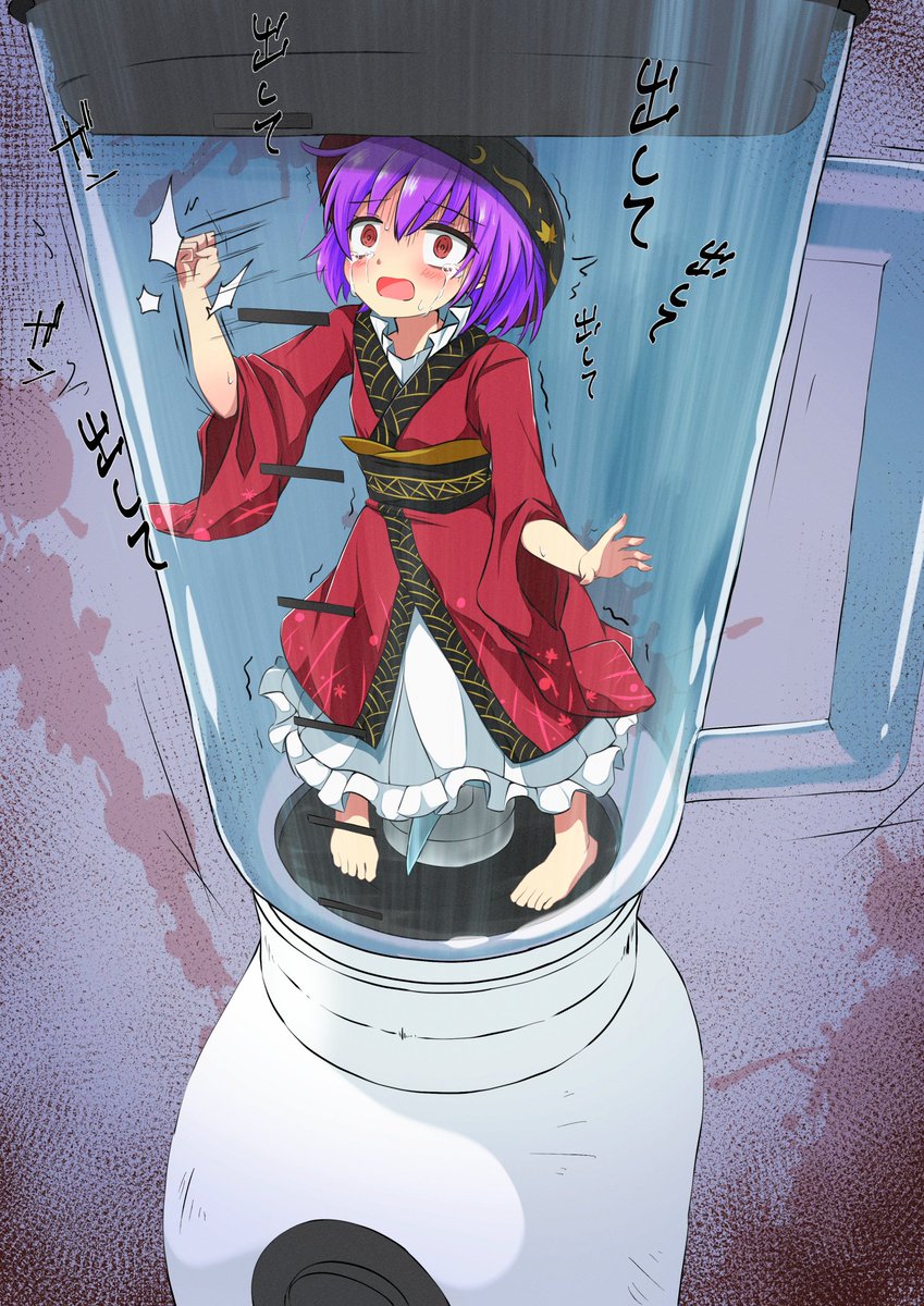少名針妙丸のソフトリョナ画像。 1.ヘソに釘を打とうとする。 2.逃げないようにミキサーに入れた。