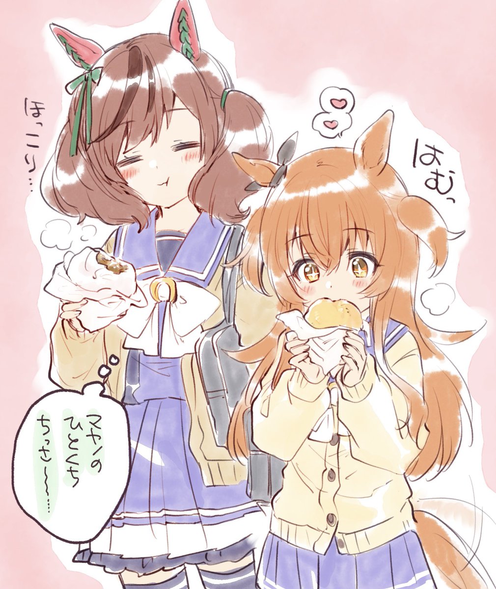 肉まん買い食いするマヤノとネイチャさん。