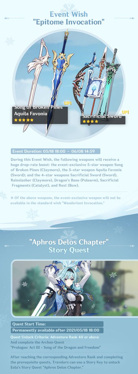 Travelers who reach the required Adventure Rank and complete the prerequisite quests will be able to use Story Keys to unlock Eula's Story Quest "Aphros Delos Chapter."