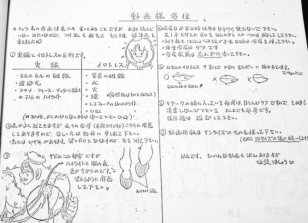 安彦良和さん原作、監督の劇場アニメ アリオン設定資料です こちらも安彦良和さんが書かれた、丁寧な作画指示が付いてました 昨日掲載した作画指示も一部使われています