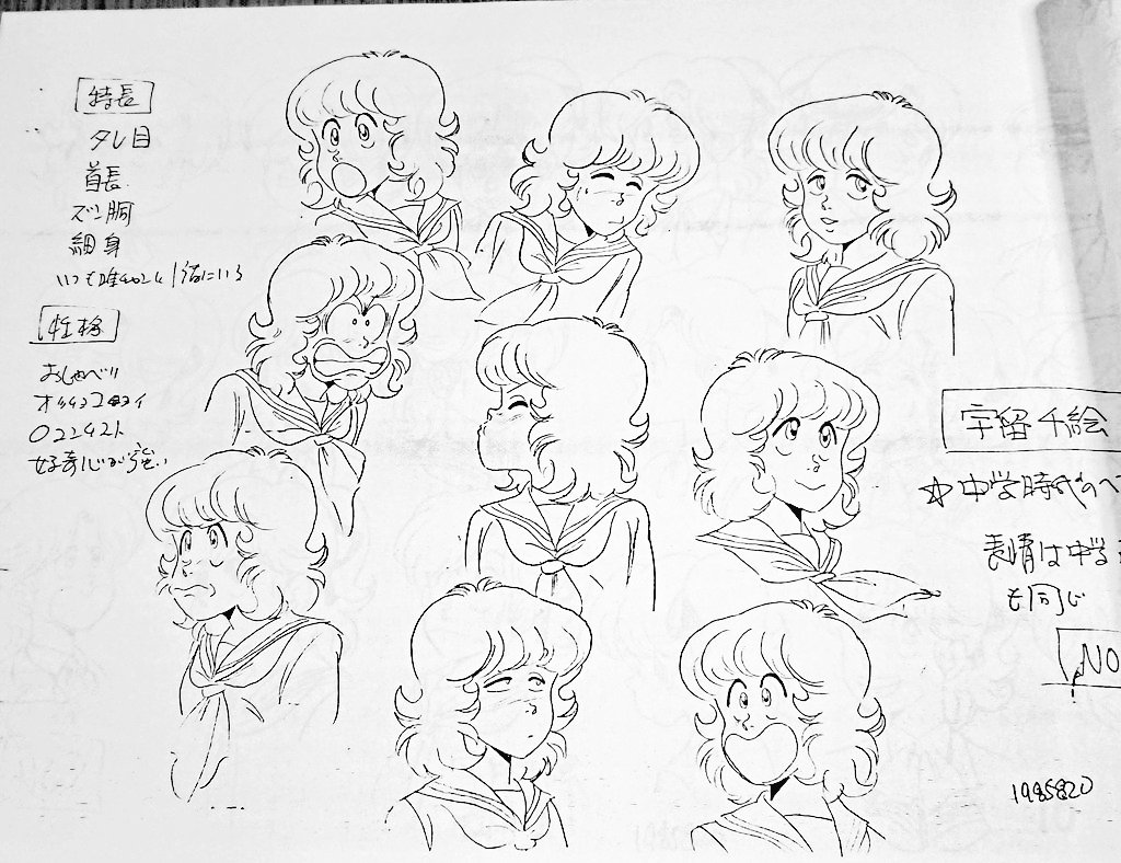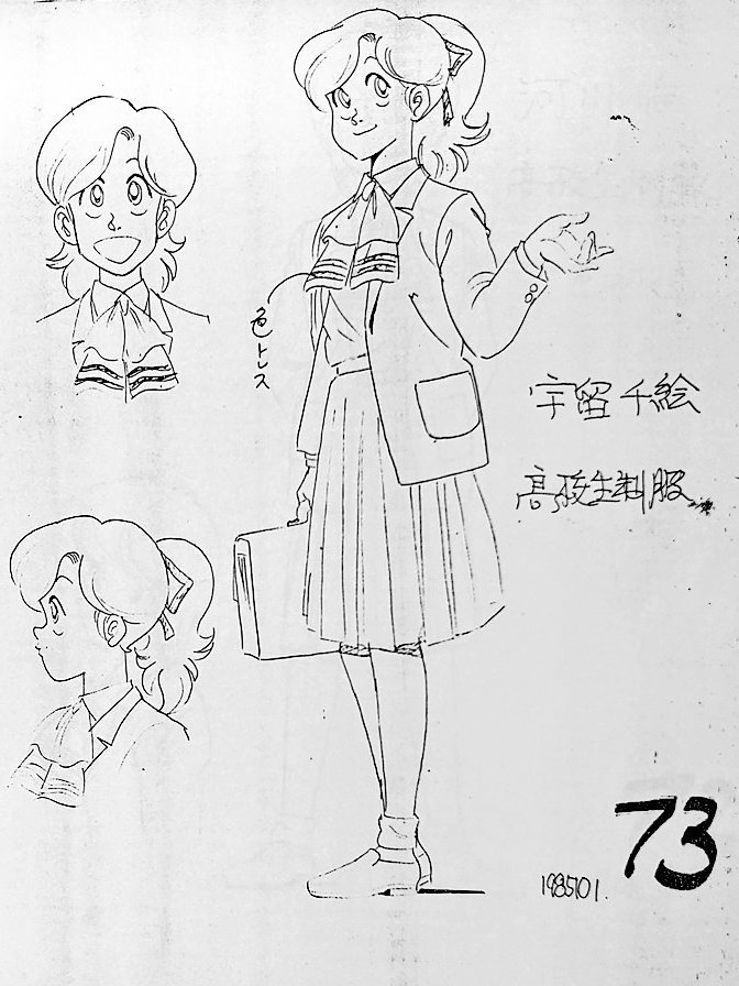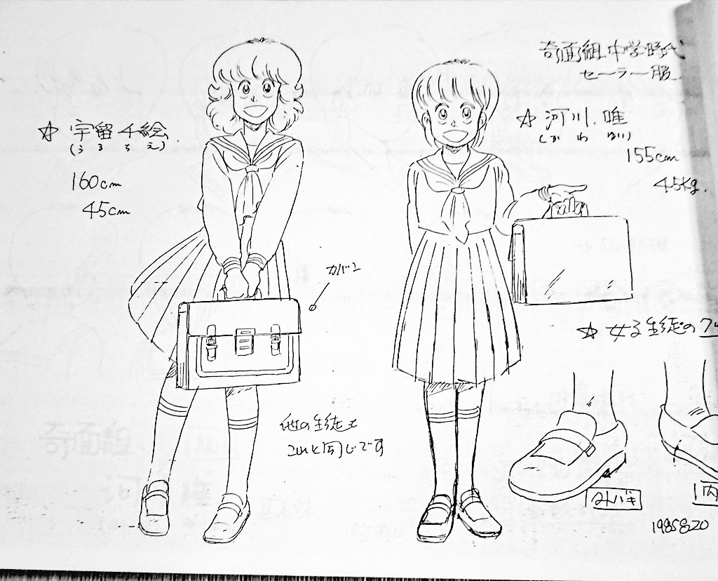 ハイスクール奇面組 設定資料から 河川唯 宇留千絵 中高生制服設定です