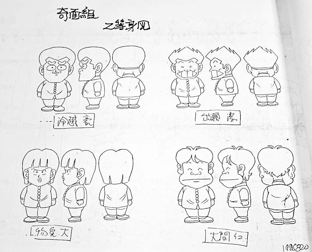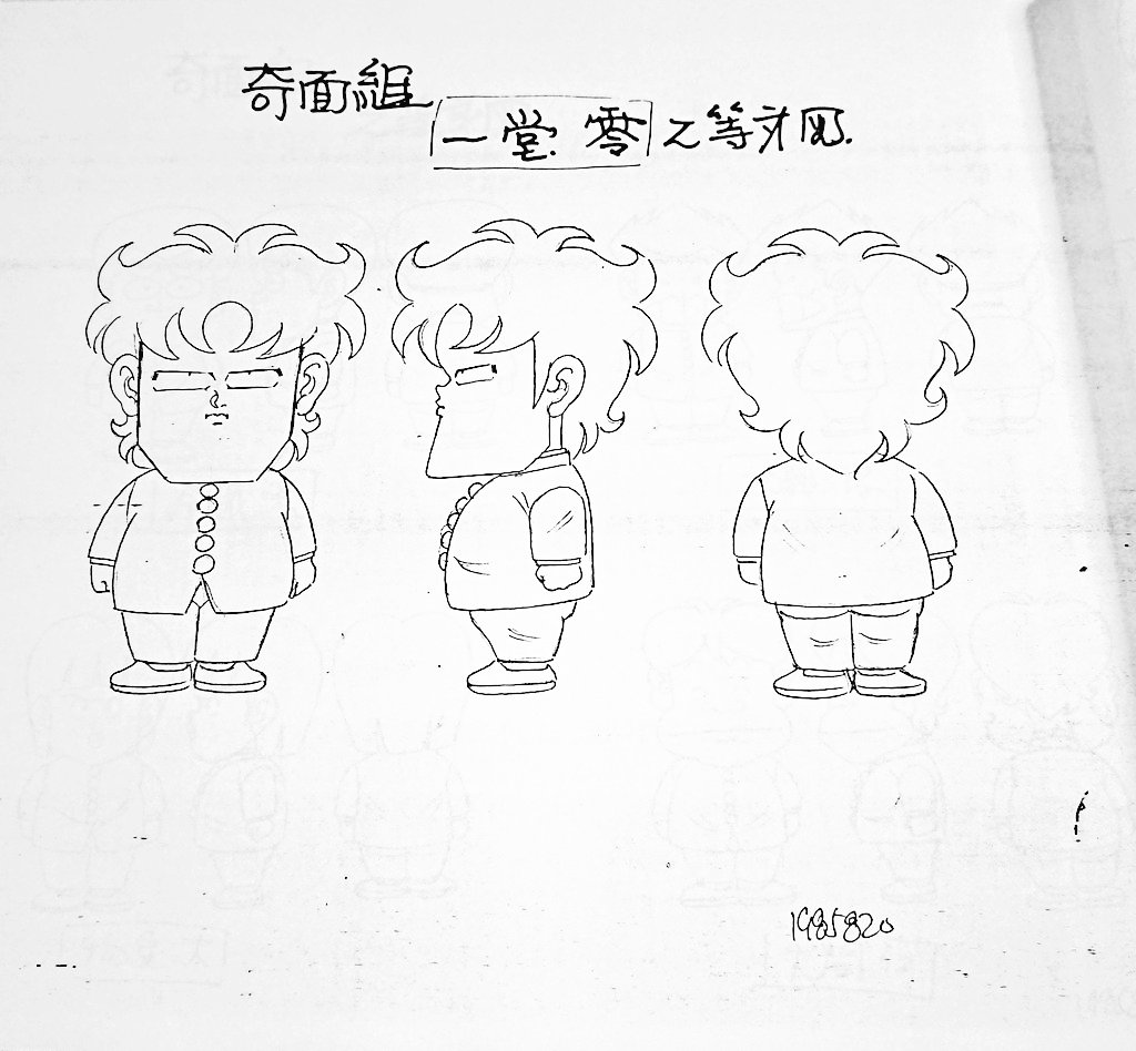 ハイスクール奇面組 設定資料から 奇面組2頭身設定です