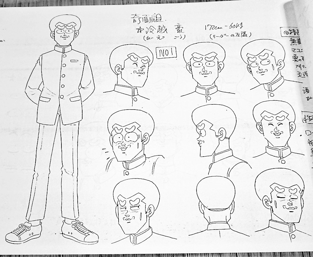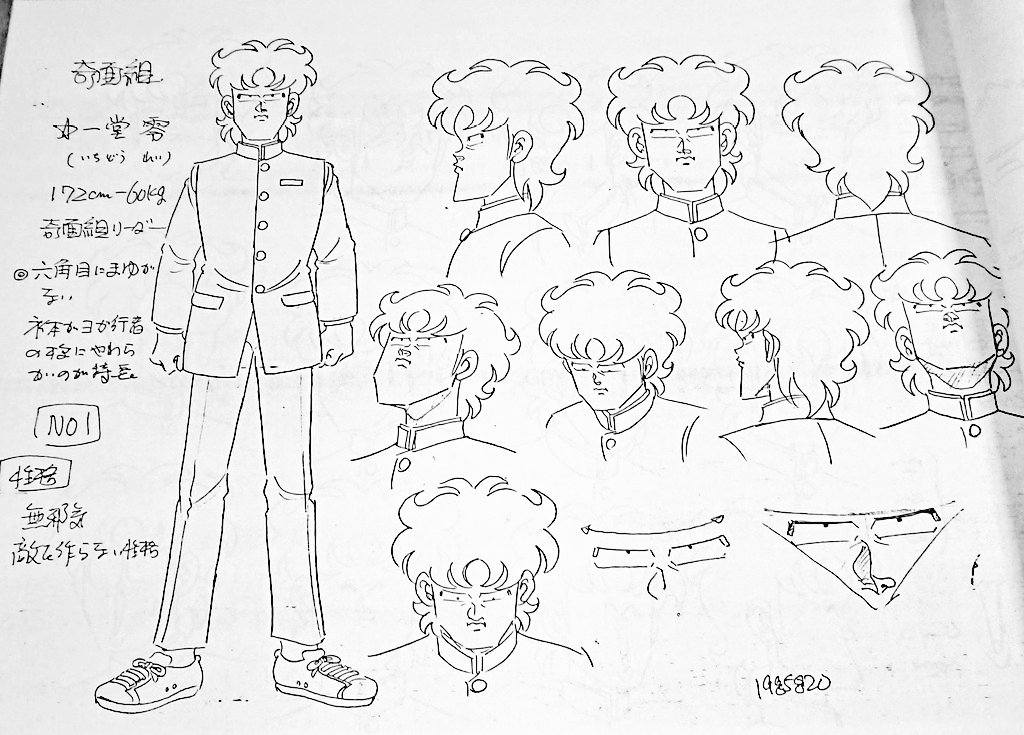 ハイスクール奇面組設定資料です 当時、動画を描かせて頂きました この資料は原作者の新沢基栄さんが、自ら描かれたとの事です