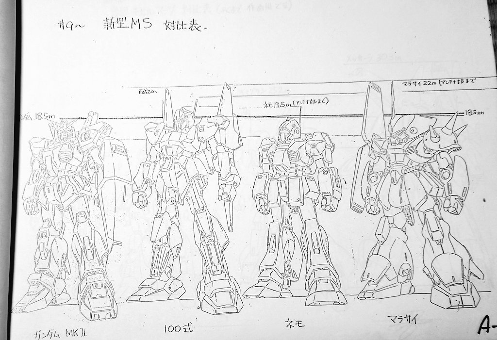 機動戦士Zガンダムメカ設定資料です こちらはモビルスーツ対比表です