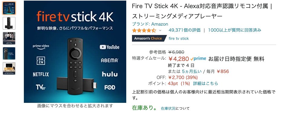 Amazonのブラックフライデー(12/1まで)でFire TV Stick 4Kが4280円になってるよ!家にテレビとwi-fiさえあれば、Youtubeもネトフリもアマプラも、そしてVliveも大画面高画質で見れるよ!つなぎ方も超簡単で数分でできるので、迷っている人がいたら超絶おすすめです