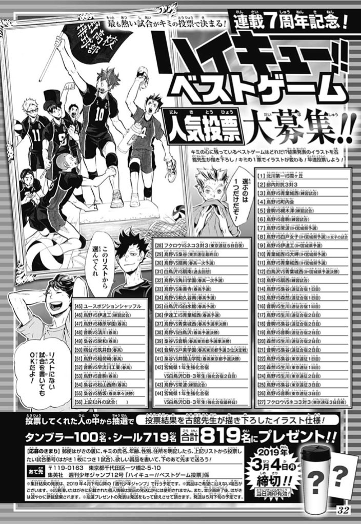Haikyu!! ranks as the #8 Best Selling Manga Series in Japan for the First Half of 2019 with an estimated 2,451,633 physical copies sold!
