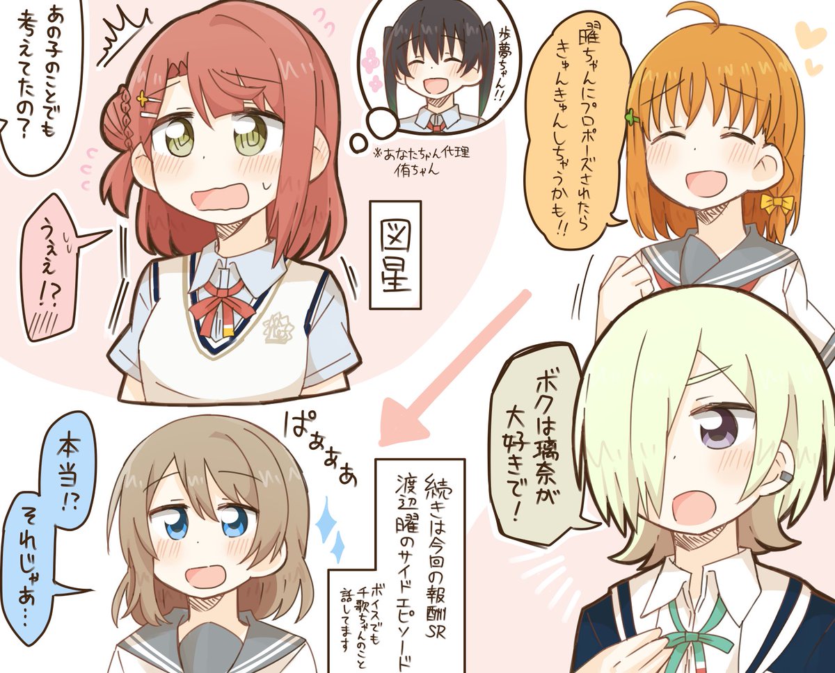 あなぽむとようちかとりなミアのオタクは今回のスクスタのイベントをやってください 報酬srのあなぽむとようちかのサイドエピソードを読んでくださいお願いしますの絵