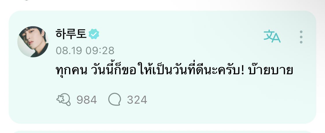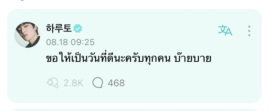 ฮารุโตะ : วันนี้ตื่น6:40คับ