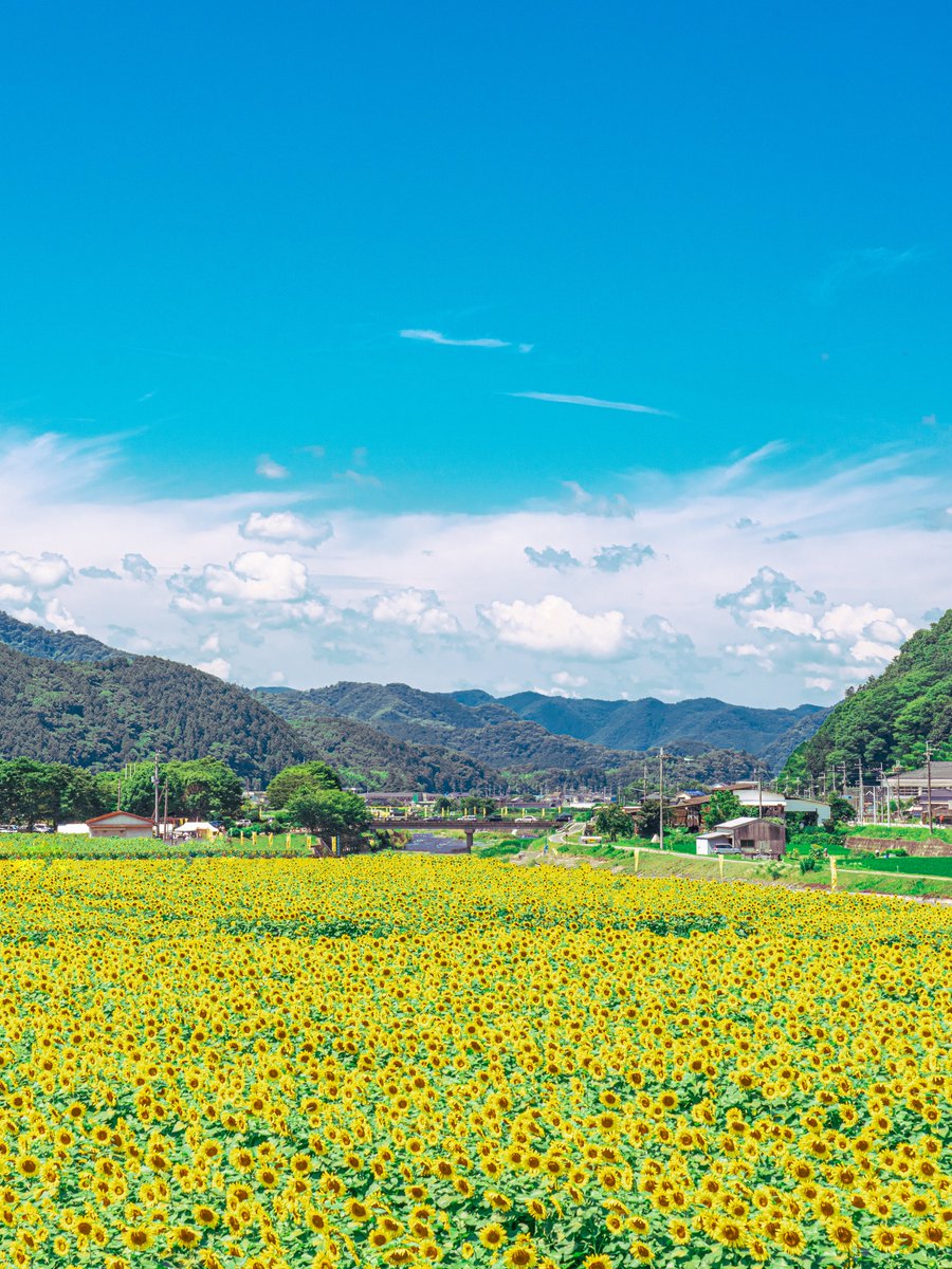 まるでアニメのようなひまわり畑があった