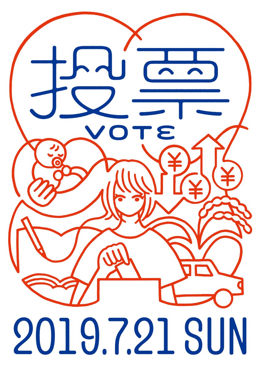 7月21日は参議院選挙投票日。投票は生活に繋がってるよポスターつくりました。にこにこ投票ちゃん並びに文字は山田くん @ymdkzhr に作字してもらいました。全国のセブンイレブンのコピー機のネットプリントでプリントできます。7月20日まで。