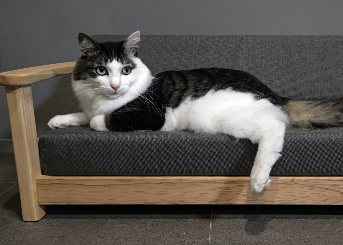 帰宅を察知し即来てくれるのですが、それまで爆睡してるので、走ってきた最後に伸びをします。笑