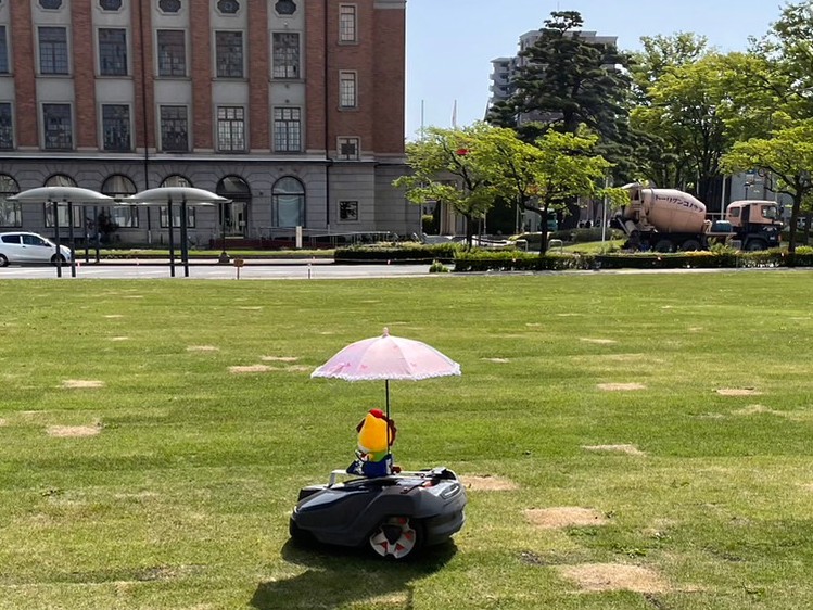 群馬県最恐のゆるキャラ、ぐんまちゃんは働き者なので今日も芝刈り機を運転中。