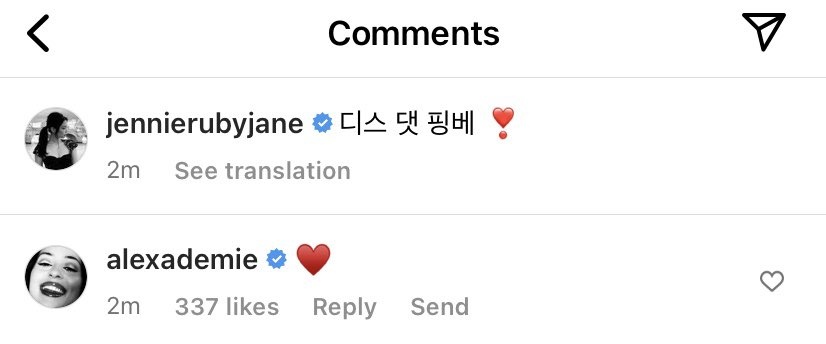 alexa demie only showing up on ig to like and drop sweet comments on jennie's posts she's just like me!