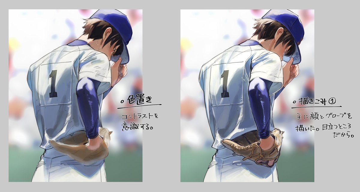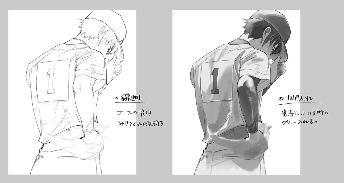 グレー→着彩までの流れこんな感じです。TLでメイキングを出されていた方のを最近は超参考にしています。 矢印以外のレイヤーはぐちゃぐちゃなので無視してください