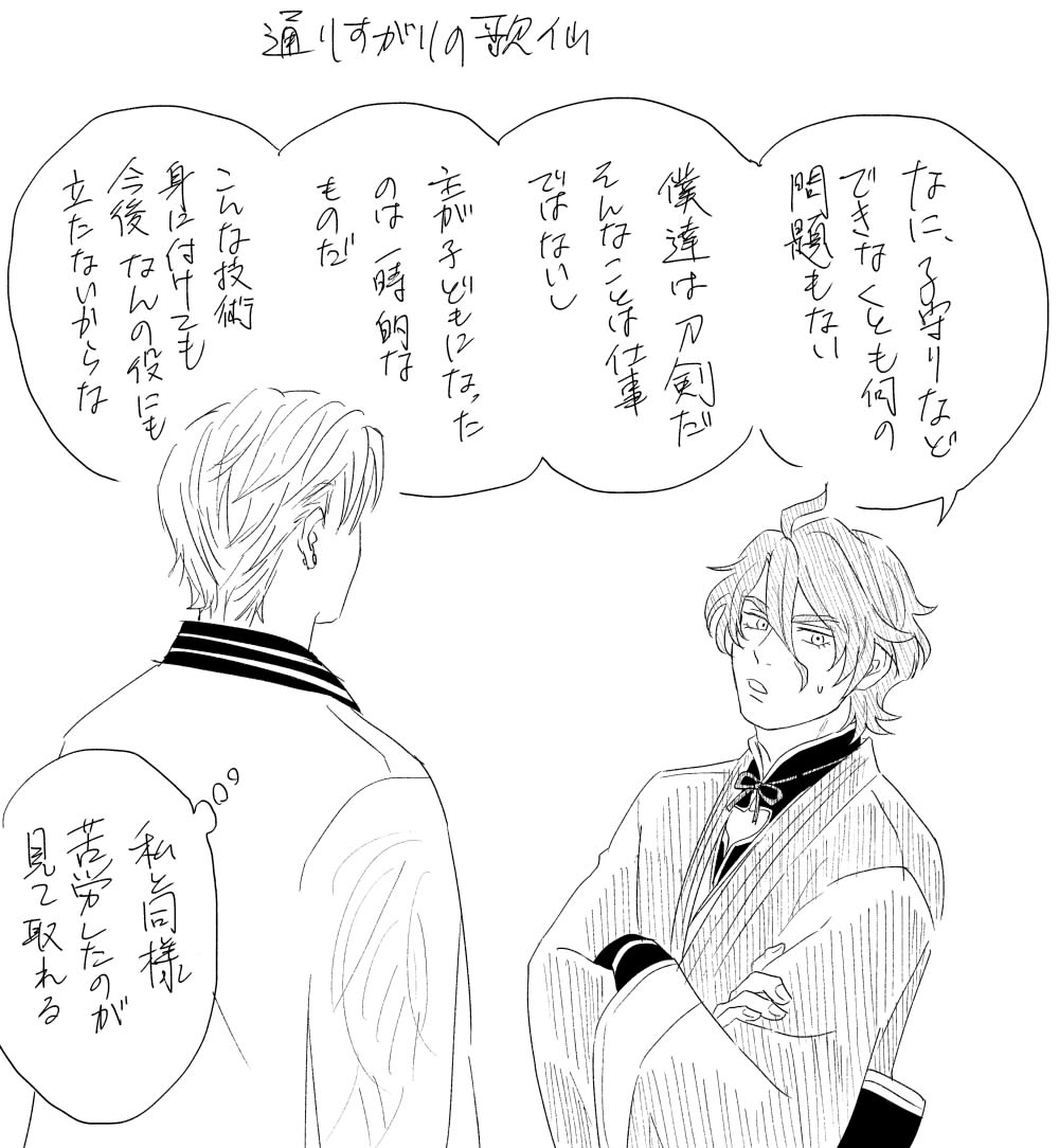 主が謎の力で幼児化してしまい子守りをすることになった刀第三弾を描いてしまった twitter.com/gmstomt/status…