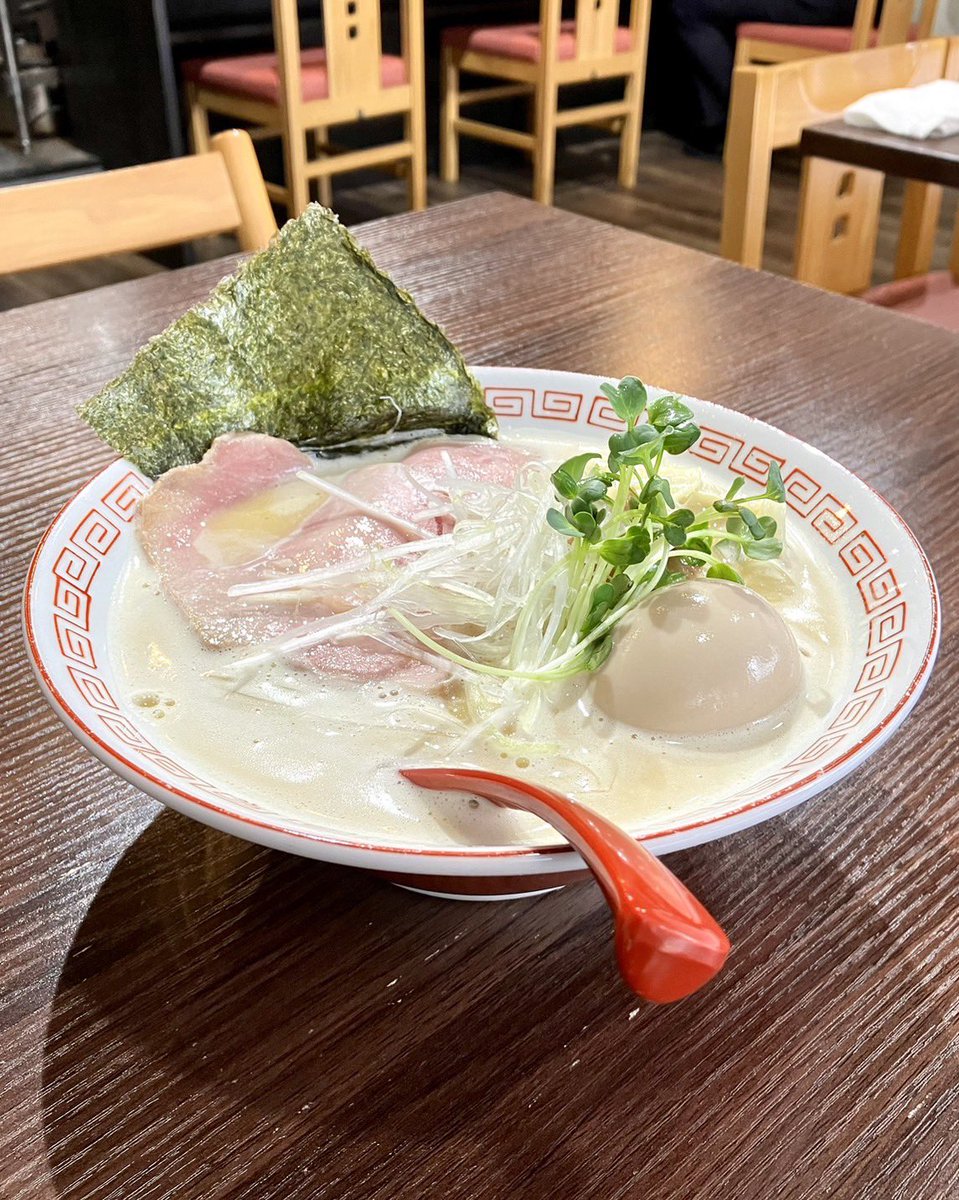 らぁ麺すみれ堂 - 都筑区北山田   鶏×トマトラーメン🍅🍜🇮🇹   鶏白湯トマトの相性💯💯💯 酸味は抑えられニンニク香る 濃厚な旨みと甘みが引き出さた🍜 粘度もアリ自家製麺と絡んで 超(๑>؂<๑)んまい❤️🤍💚   めちゃ激うまくーん🎉🎊💕✨   こんな美味しい🍜を作る すみれ👨🏼‍🍳マスターI respect you🙇‍♀️