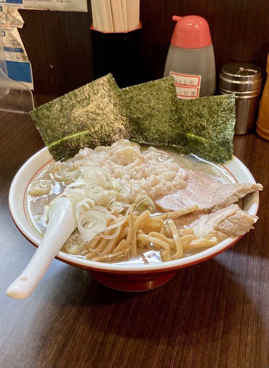 吉田食堂 - 鶴見   特製中華そば🍜900円   濃厚ニボニボᗦ↞◃🐟 ᗦ↞◃ ㌧(๑•̀🐽•́ฅ)㌧スープ💗 煮干し&豚骨のfusion👉👈 相性💯💯の旨旨🍜麺‼️ 刻み玉ねぎ入れ放題㊗️   久しぶりに食べたら 尚更ハンパない❣️ うまい...(ᵒ̴̶̷᷄൧̑ ᵒ̴̶̷᷅ )うま過ぎるゥゥ💘   はい🙋‍♀️激うまくん🎉🎊🥇🏆✨