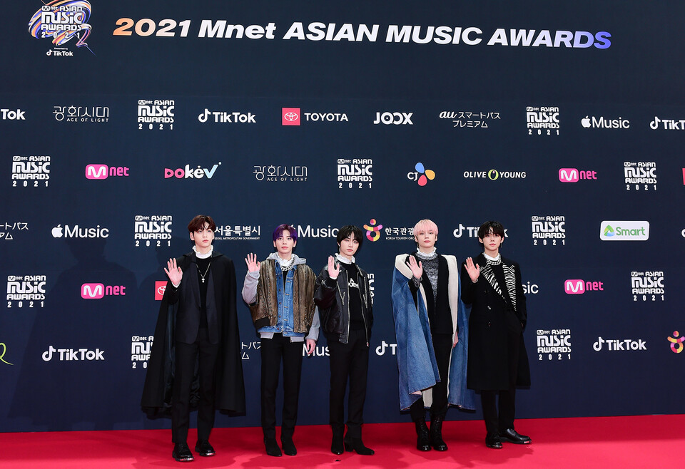 TOMORROW X TOGETHER won their 3rd consecutive "Worldwide Fans' Choice Top 10" at the 2021 Mnet Asian Music Awards (MAMA).