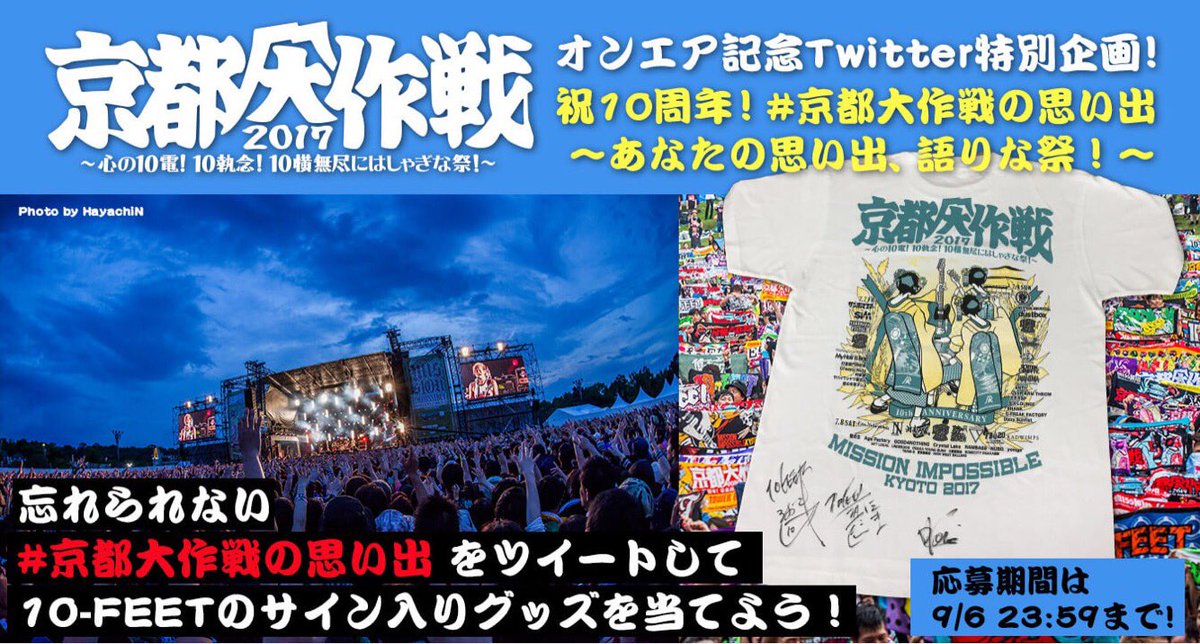 伝説のステージや参加時のエピソードなど、忘れられない思い出をツイートして10-FEETサイン入りグッズを当てよう!