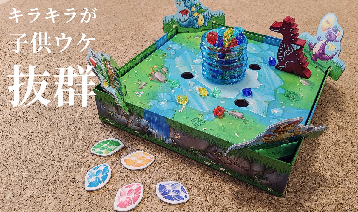 氷の柱に閉じ込められた宝石をゲットするゲームで、落ちそうな宝石をよく見て予想をたてる→柱を崩す→予想と合った宝石が手に入るというルール。どれが落ちるかよく見ることで→ twitter.com/i/web/status/1…