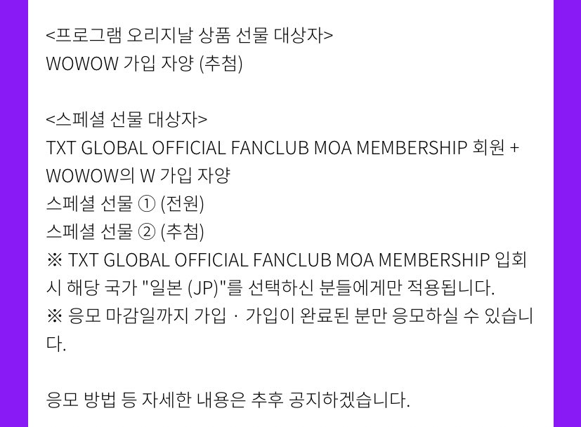 - WOWOW 가입자 한정 상품 추천 및 TXT GLOBAL OFFICIAL FANCLUB MOA MEMBERSHIP 한정 대상 선물