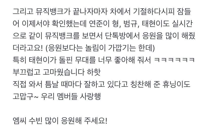 돌핀 수빈이 ㅠㅠㅠㅠㅠ 선배님 노래라 완죤 집중했어