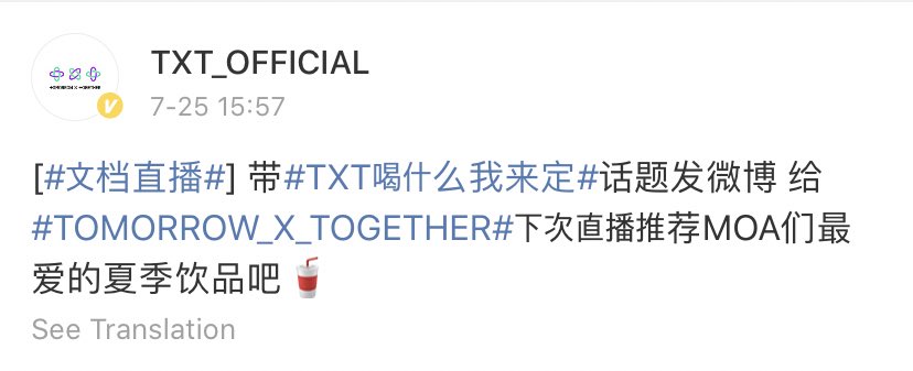200725 #투모로우바이투게더 공식 웨이보 업데이트