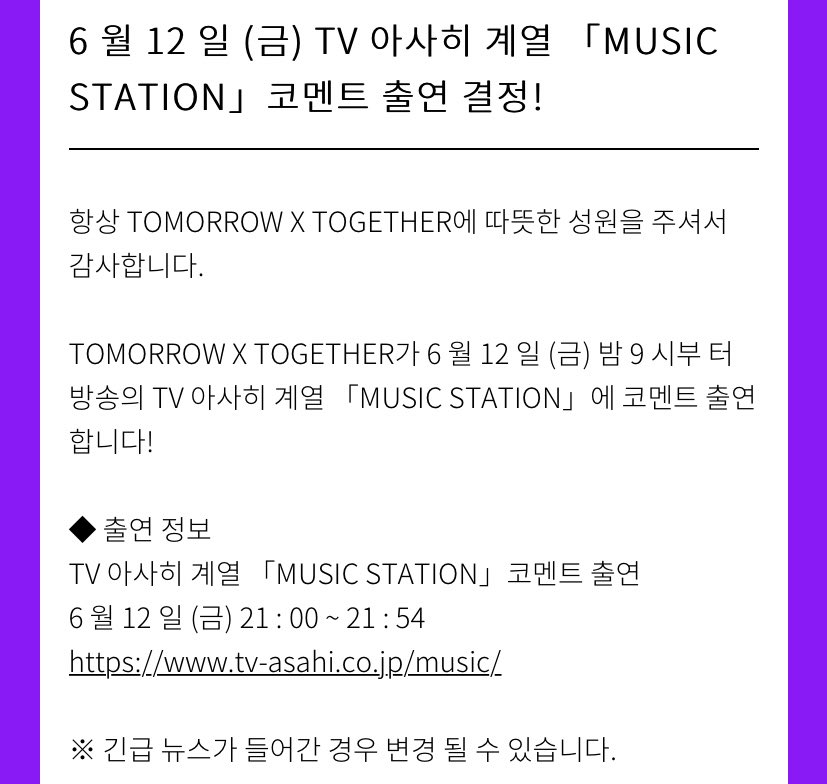 #투모로우바이투게더 「MUSIC STATION」 코멘트 출연