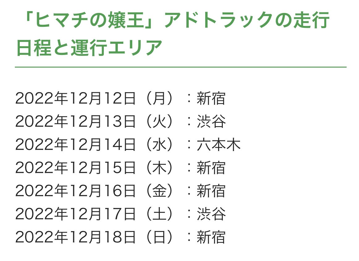 🥂【ヒマチの嬢王】トラックが本日12月12日〜18日まで新宿歌舞伎町を含む都内繁華街を走行します🥂