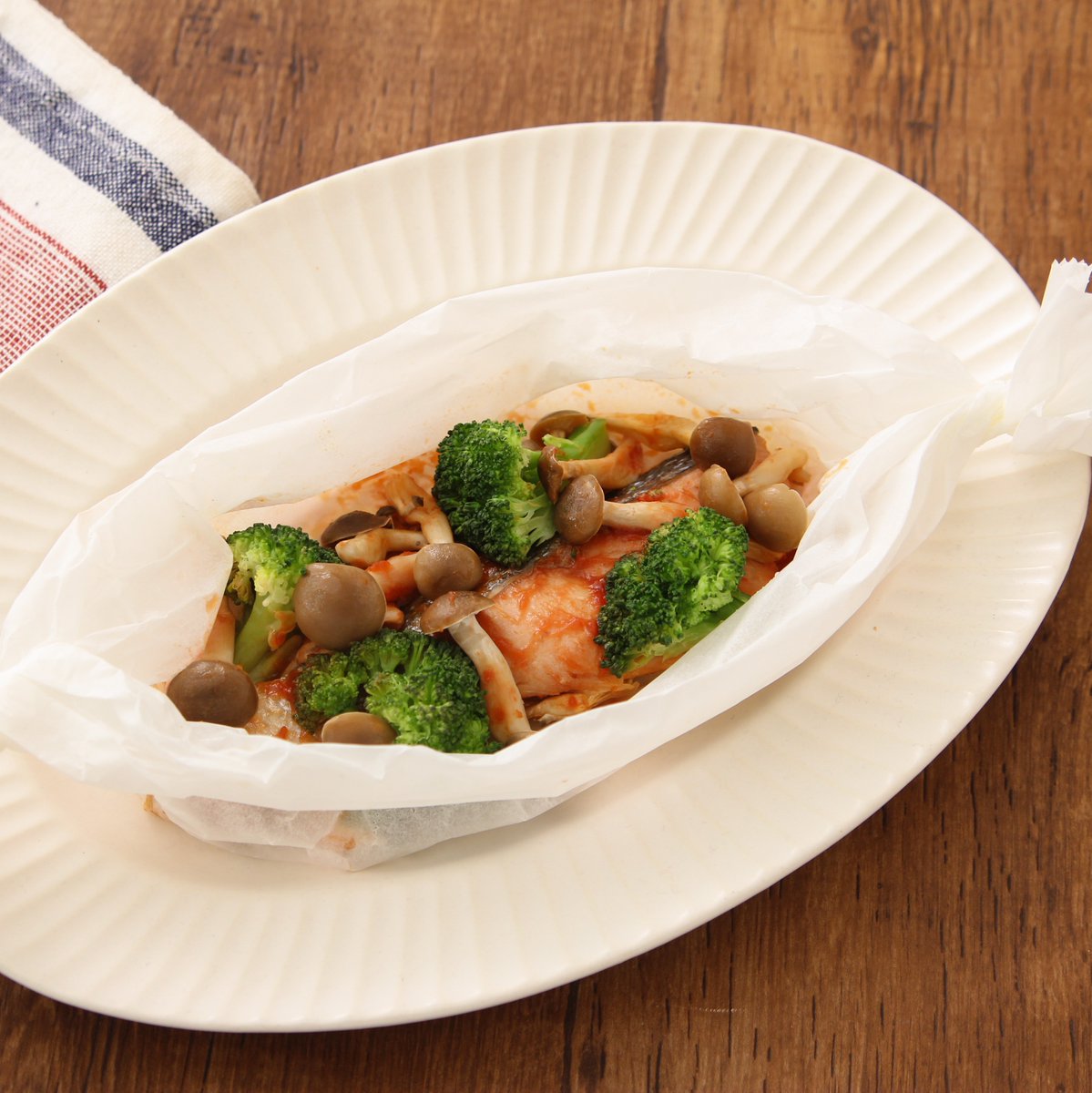 魚料理って難しい… って思う人にこれおすすめです。 包んでチン!だけ。 誰でも美味しく作れます。 【鮭の包み蒸し】 キチントさんクッキングシートに甘塩鮭1切れ、ブロッコリー4房、しめじ50gのせ、ケチャップ大1、麺つゆ小1を混ぜかけ包み耐熱皿にのせ500Wレンジ5分。