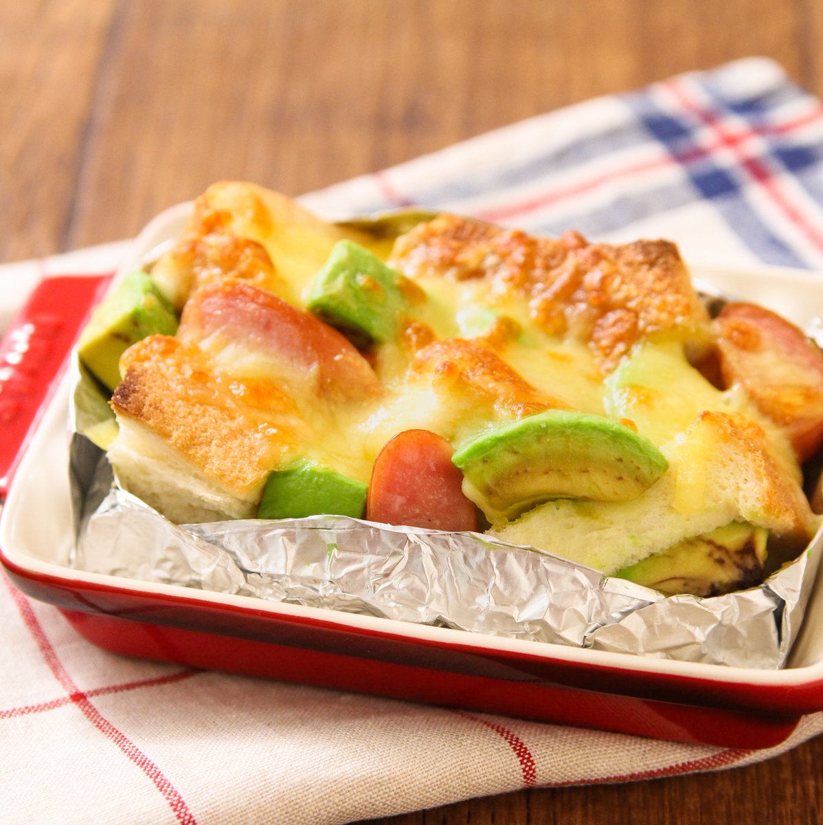 これ洗い物少なくて美味しくできるの嬉しい…! 【アボカドソーセージのパングラタン】 焼きたてが最高… キチントさん フライパン用ホイルシートで型を作り、食パン1枚、ソーセージ2本、アボカド1/2個に1分レンチンした牛乳100mlとコンソメ小1/2を混ぜてかけチーズ20gをのせトースターで7分程焼く