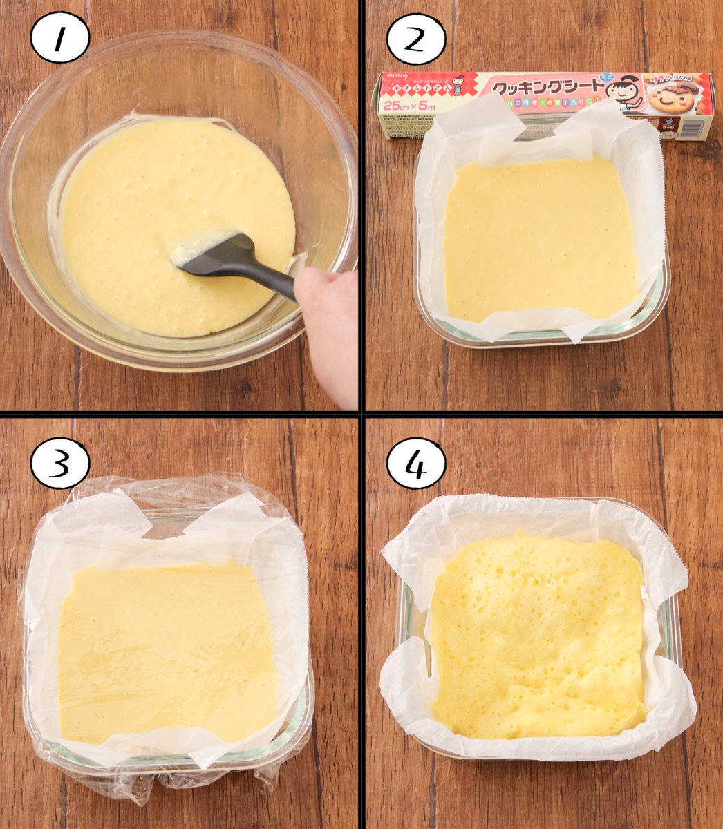 熟れすぎバナナはこれで即解決。 バナナとヨーグルトで間違いない美味しさの【しっとりバナナケーキ】レンジで作れます。混ぜてチンするだけ簡単。 バナナ1本潰し、卵1個、砂糖大2、無糖ヨーグルト100g、油大3、ホットケーキMIX150g混ぜ、キチントさんクッキングシート敷いた耐熱容器に入れ 続く▼