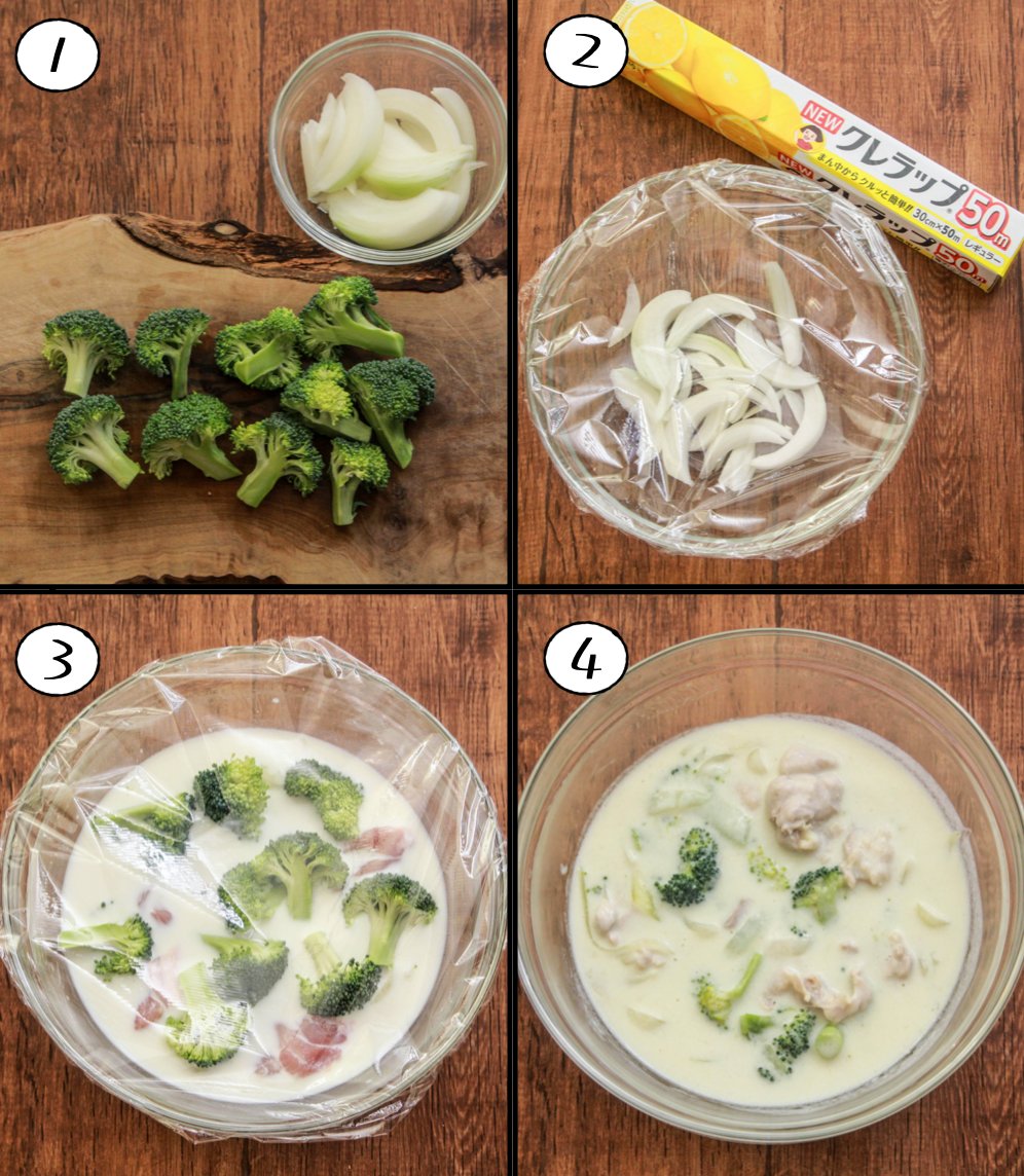 シチューにご飯はアリ・ナシかって議論あると思うのですが、実は「白だし」入れるとご飯にもの凄く合う味になります。 レンジで簡単! 耐熱ボウルに玉葱1/2個、水大1/2入れNEWクレラップし3分チン。小麦粉大2.5混ぜ溶かし牛乳400ml、白だし大1混ぜ鶏肉200g、ブロッコリー6房加え 続く↓