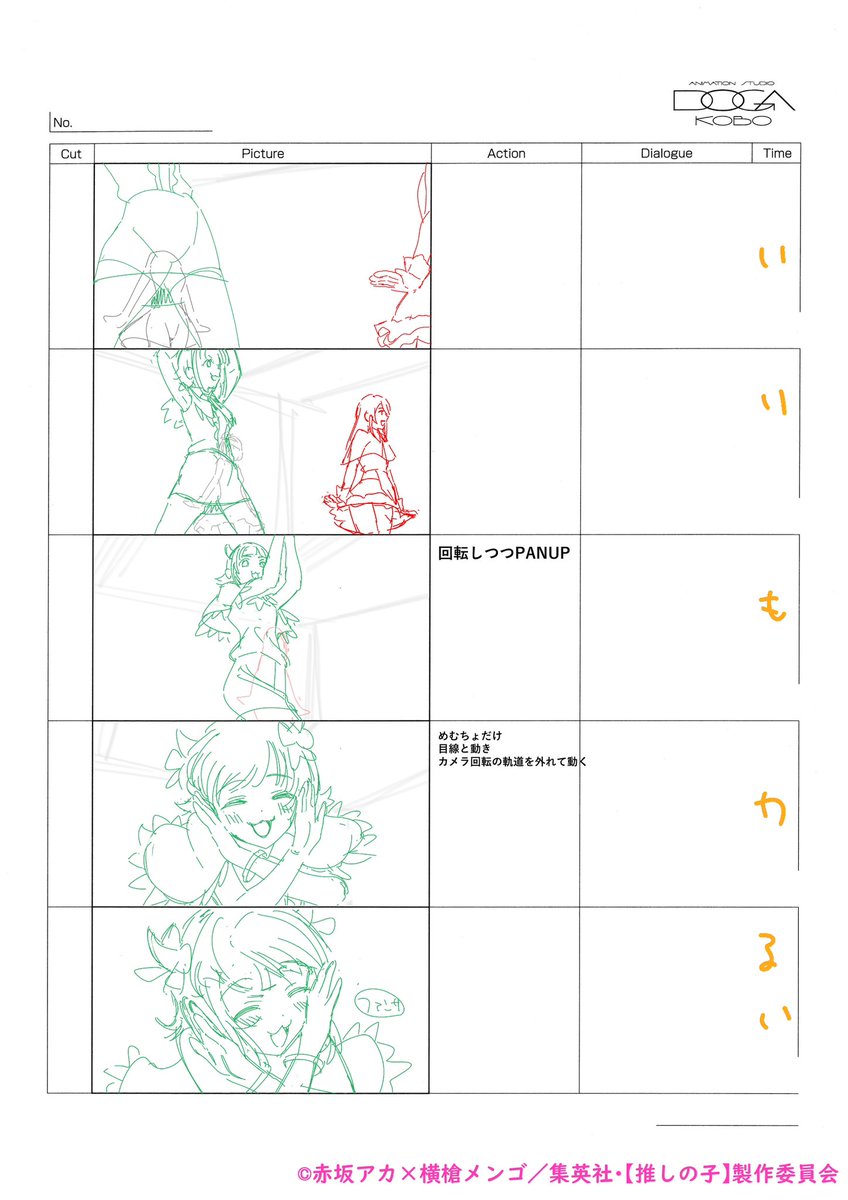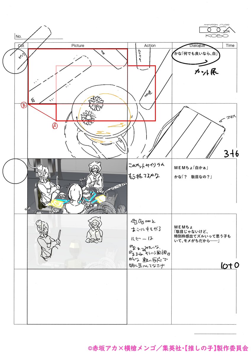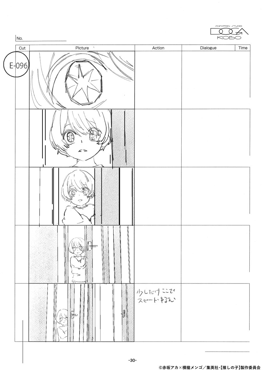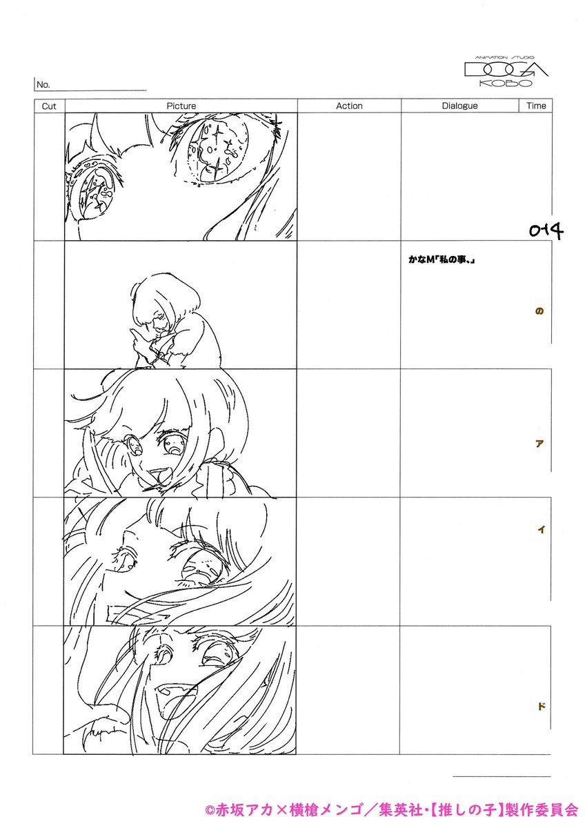 【推しの子】OPやEDもついて、やっとここから物語が動き出す感じがします…アイの物語は一度幕を下ろし、そしてそれは子供達へと繋がっていきます。是非ここからもさらに楽しんで頂きたいです!画像は1話の絵コンテです(掲載許可済)。1話も物語の原点として是非たまに見返してくださいね