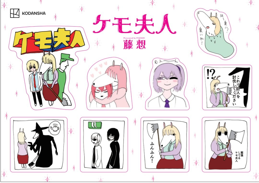 アフタヌーン様で実施中の、ケモ夫人の感想をツイートするとステッカーが貰えるやつ!の!デザインが完成しました!この謎にかわいすぎるステッカーが欲しい方は是非応募してくださいね〜〜〜かわいい〜〜〜