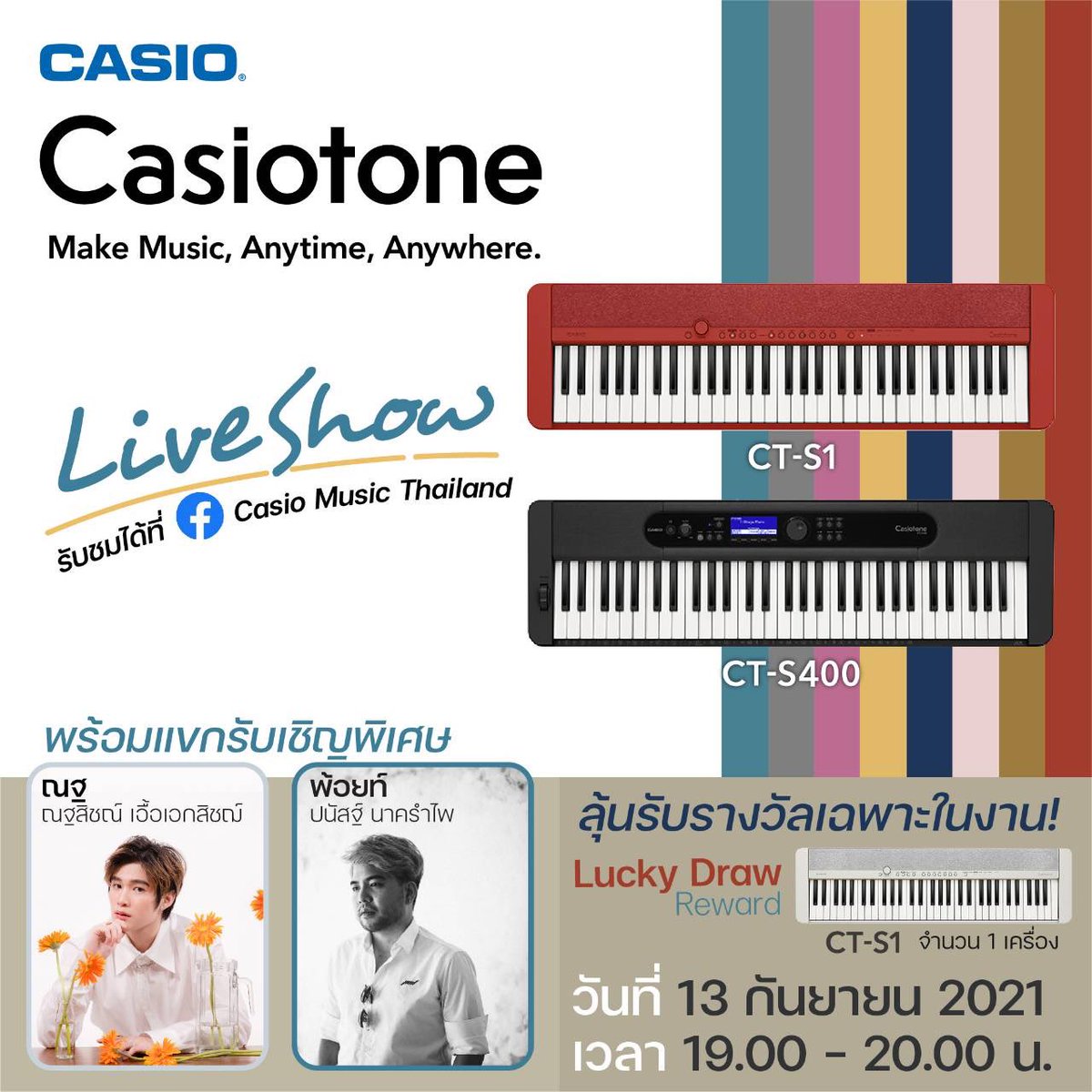 พบกับ คุณณฐ ณฐสิชณ์" และ "คุณพ้อยท์ ปนัสฐ์ นาครำไพ" จะมาทั้งเล่นทั้งร้องเพลงเพราะ พร้อมแจกรางวัลสุดพิเศษ "Casiotone CT-S1"