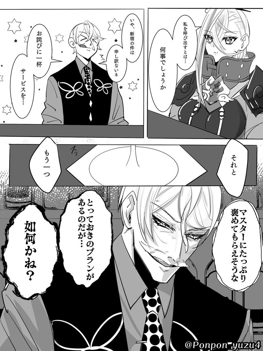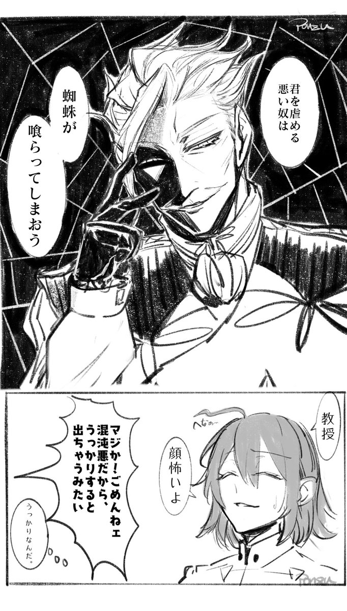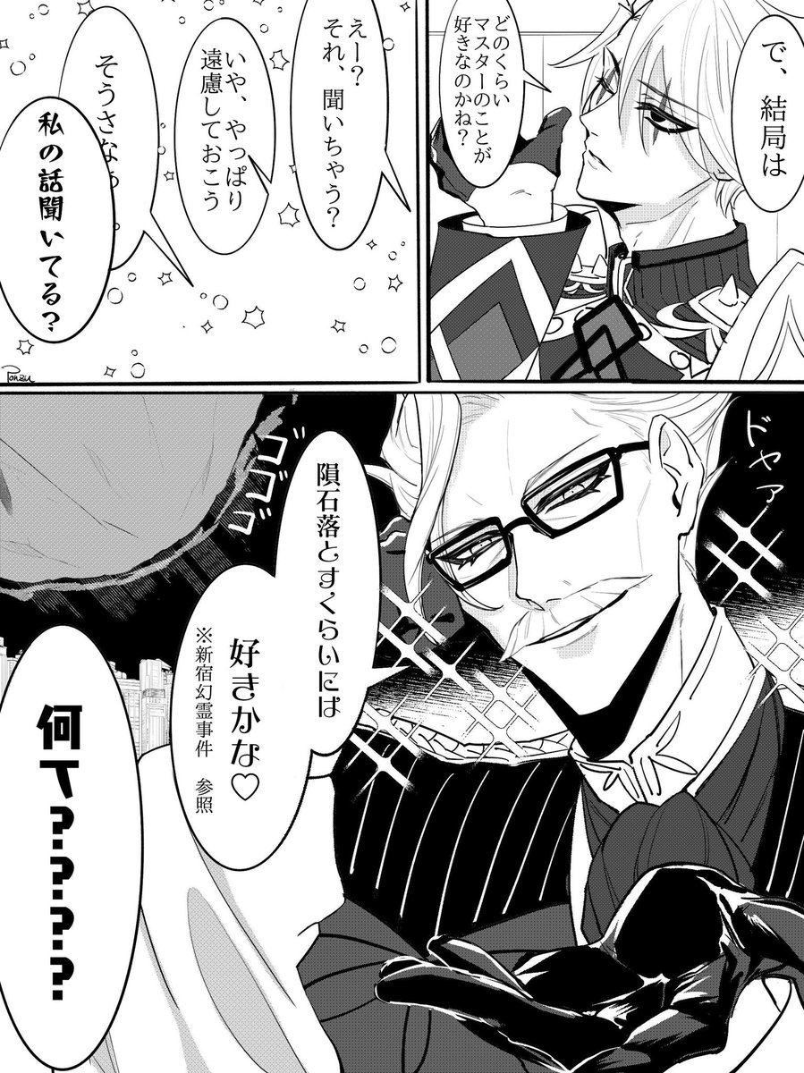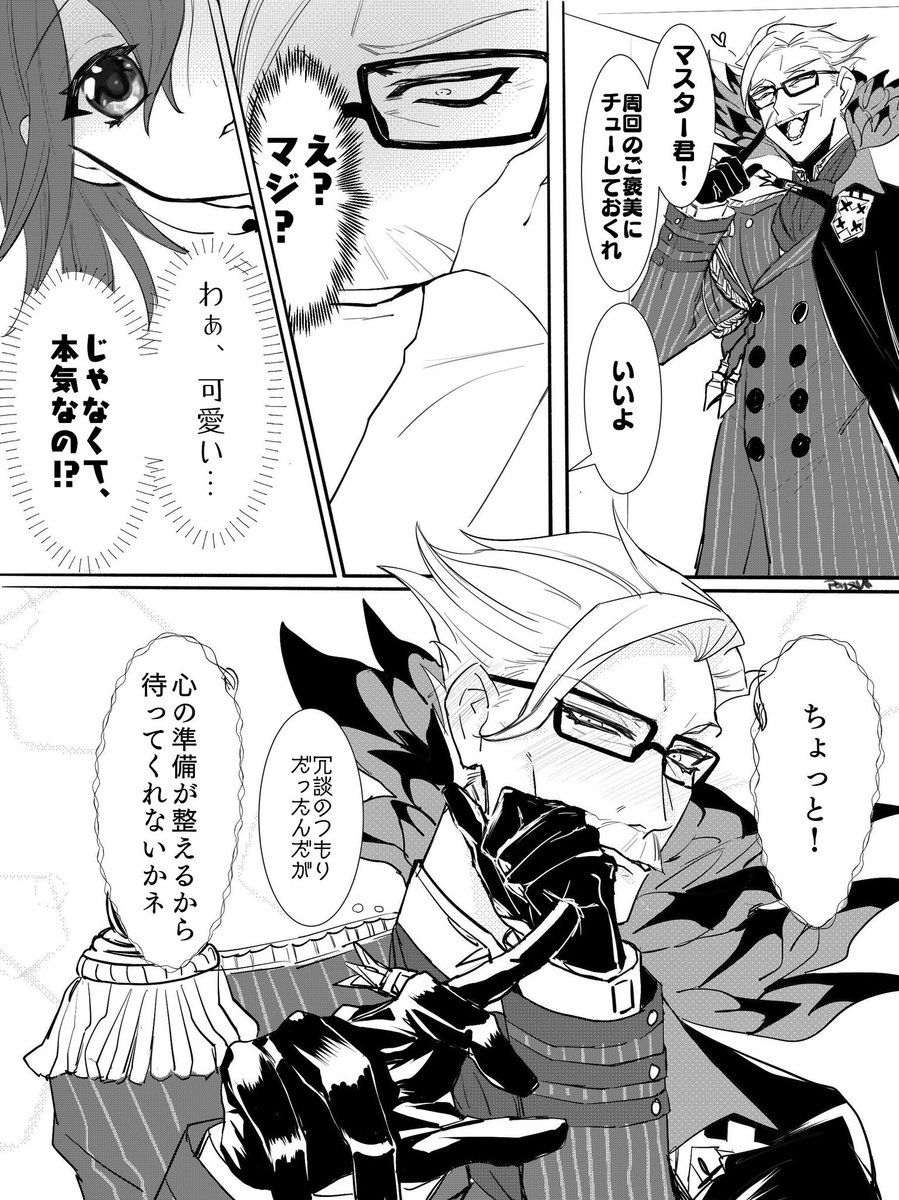 新茶と若モリ お互いずーっと煽りあって喧嘩して。 若モリ君のバレンタイン老齢の自分めっちゃ敵視してて笑ったし、新茶は痛くも痒くもねぇって感じなのが、らしいと思いました。
