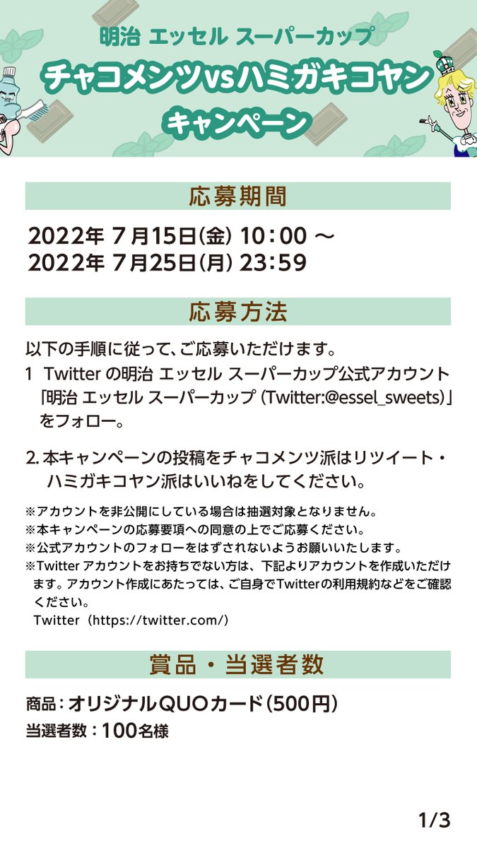 2.この投稿を #チャコメンツ 派はRT・ #ハミガキコヤン 派はいいね
