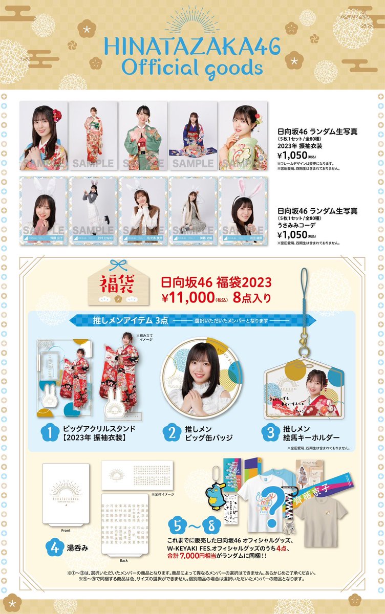 2023年1月7日(土)14:00〜日向坂46 OFFICIAL GOODS STOREにて福袋と、生写真2種類(2023年 振袖衣装、うさみみコーデ)の販売を開始致します🎍🐇