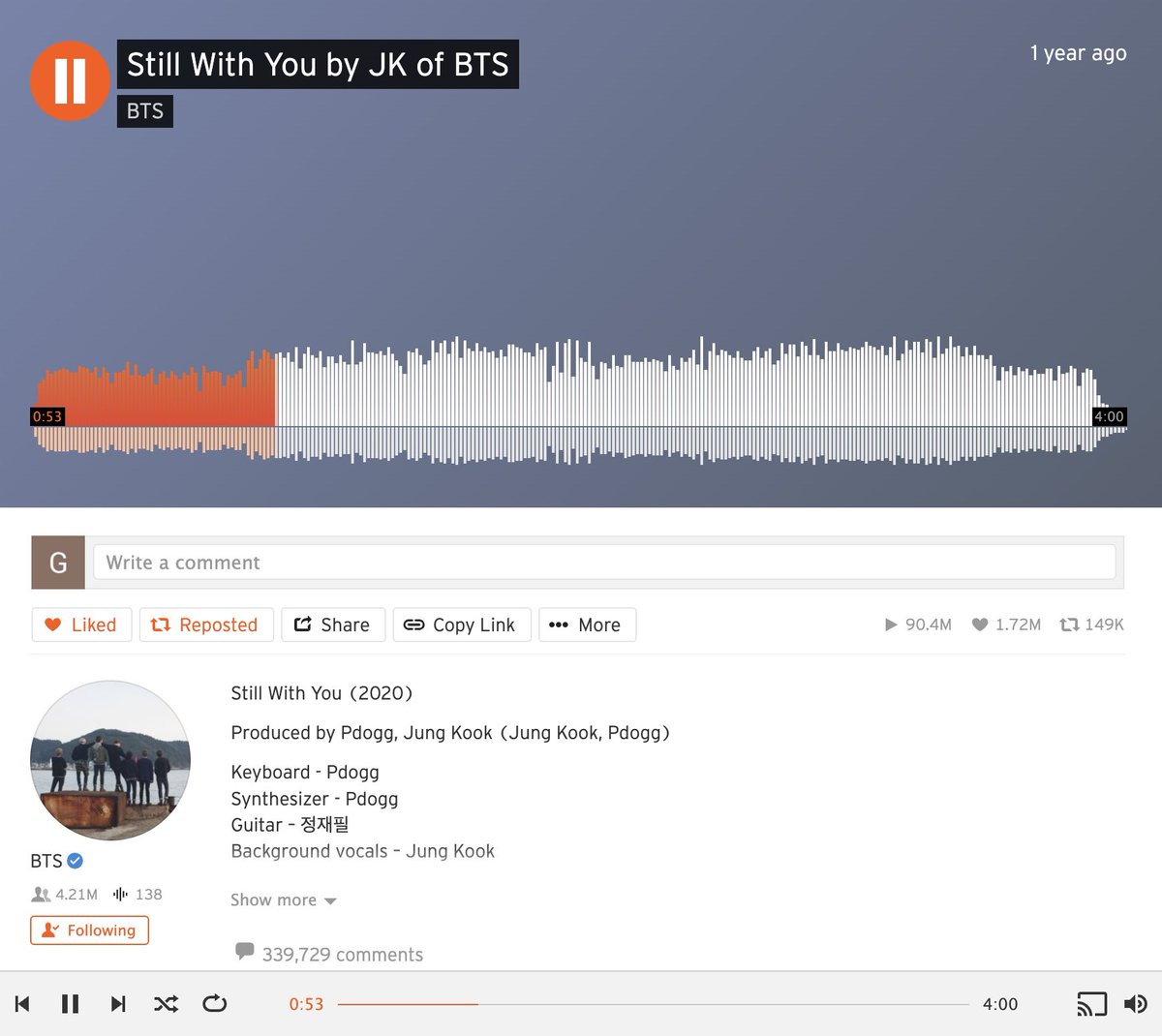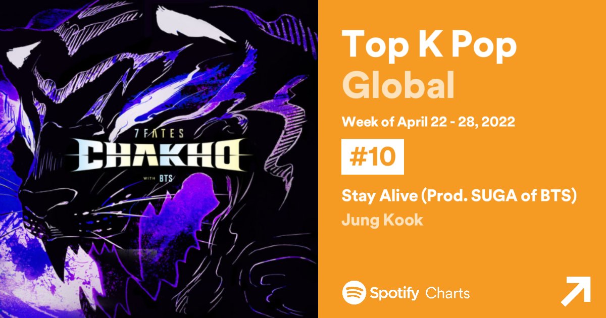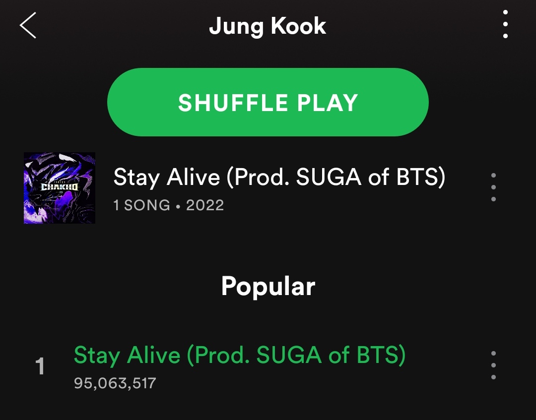 "Stay Alive (prod SUGA)" by Jungkook has gained 833,551 streams on Spotify in the last 24h surpassing 91M streams!