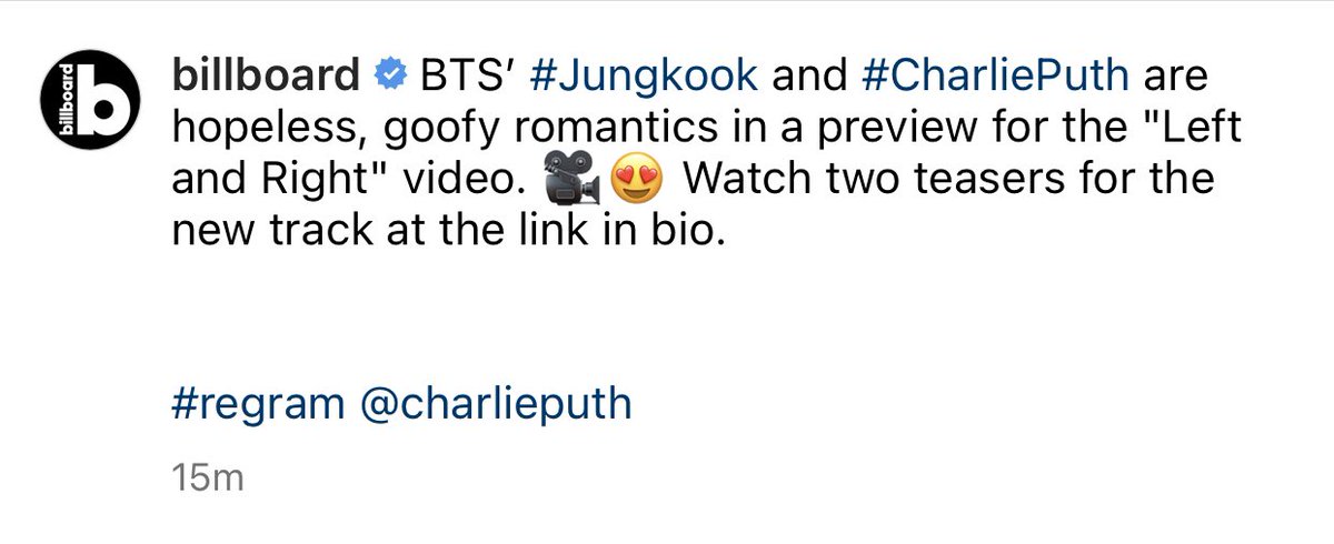 “BTS’ Jungkook and Charlie Puth are hopeless, goofy romantics in a preview for the "Left and Right" video. 🎥😍 Watch two teasers for the new track at the link in bio.”