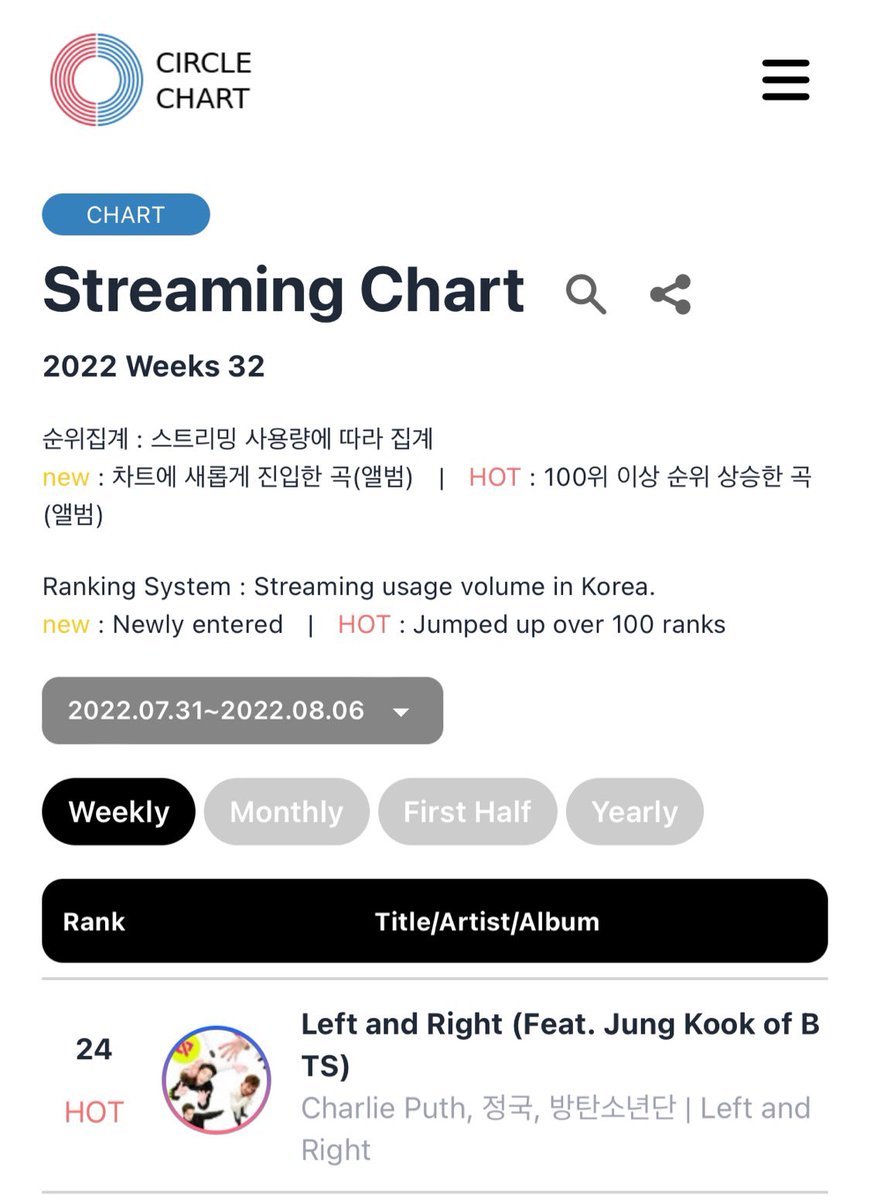 "Left and Right" on Billboard charts (week of August 13, 2022)
