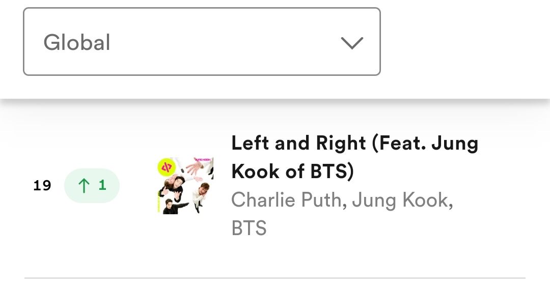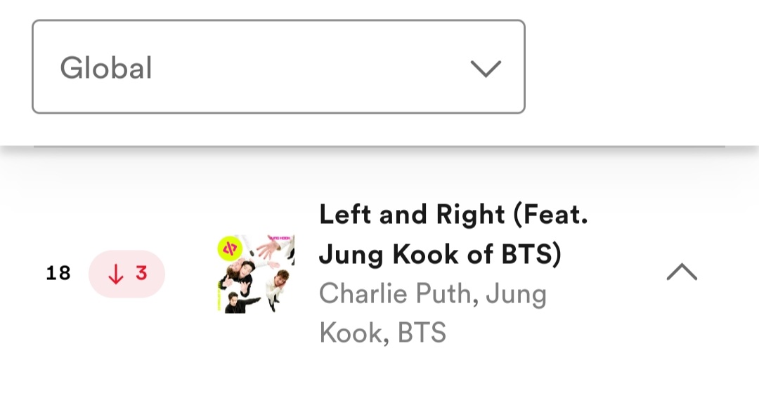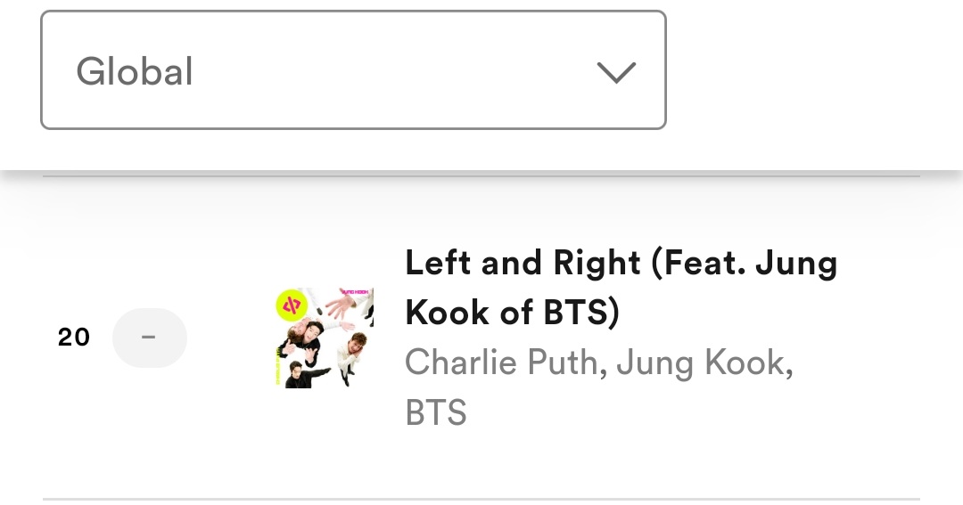 “Left and Right” spends its 9th charting week in Top 20 of Spotify Weekly Top Songs Global 🌎