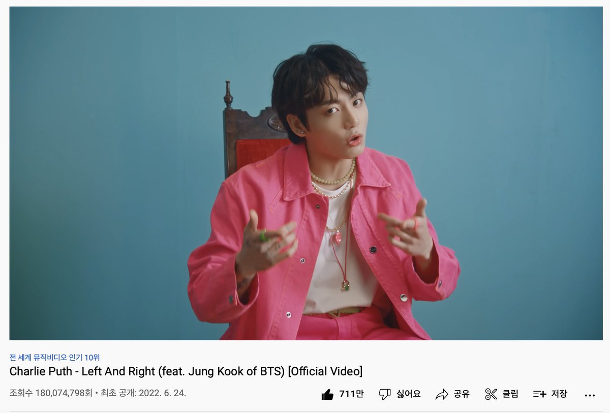 “Left and Right” by Charlie Puth feat. Jungkook has surpassed 200M streams on Spotify, making Jungkook the fastest K-Pop and Korean soloist ever to reach this milestone!