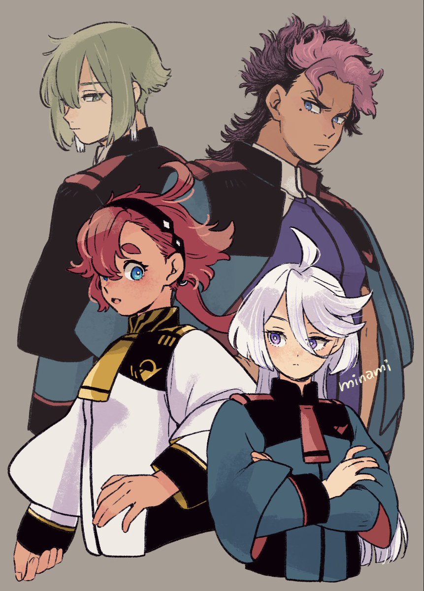 スレッタにミオリネを追加したイラスト凄く沢山見てもらえて嬉しくて調子に乗ってグエルとエランも仲間入り☺️
