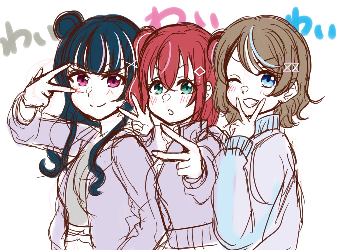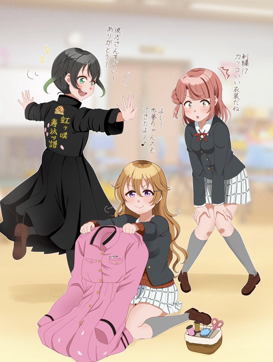 文化祭の準備をしてる3人を描きました✨️