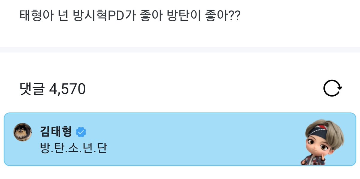 ARMY: taehyungah do you like Bang Shihyuk PD or Bangtan?