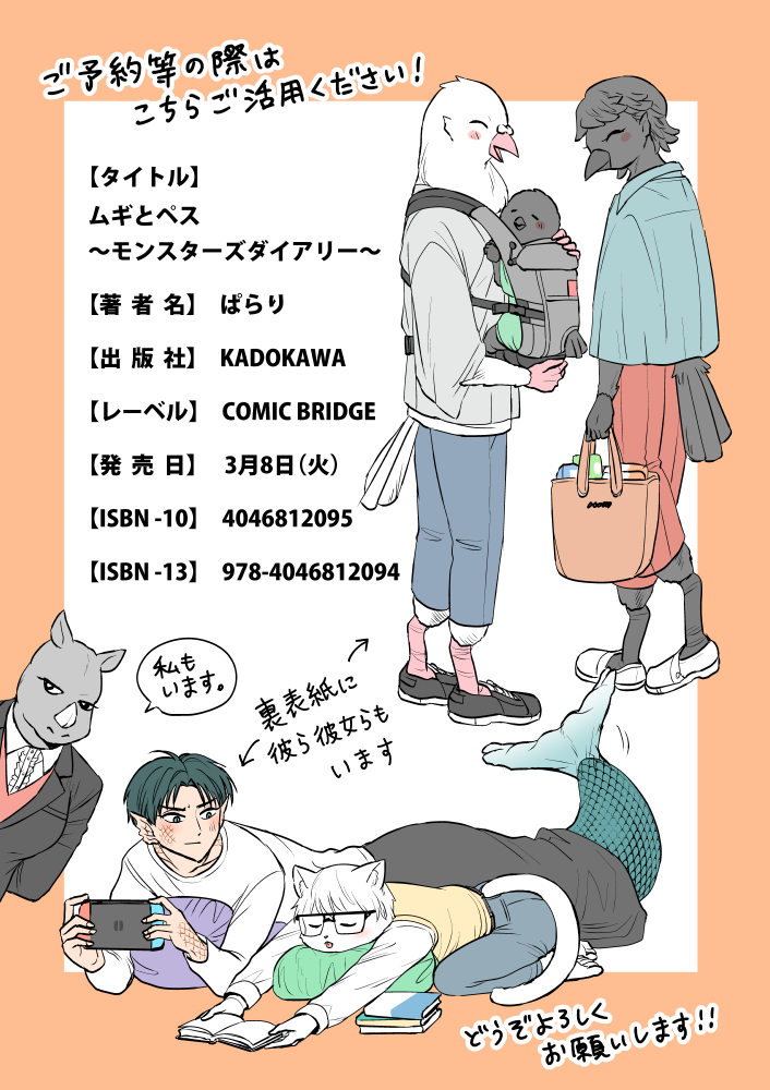 読んで頂きありがとうございます。こちら収録された「ムギとペス~モンスターズダイアリー~」発売中です!いろんな種族のいろんなお話が詰まっております。どうぞよろしくお願いします! #ムギとペス